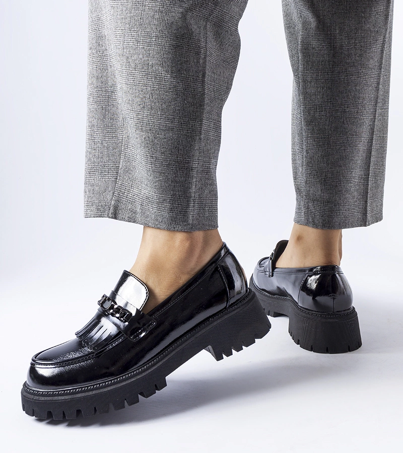 ( cantitate produse: 12128 )Mocasini negri lucioși cu cataramă Agordina