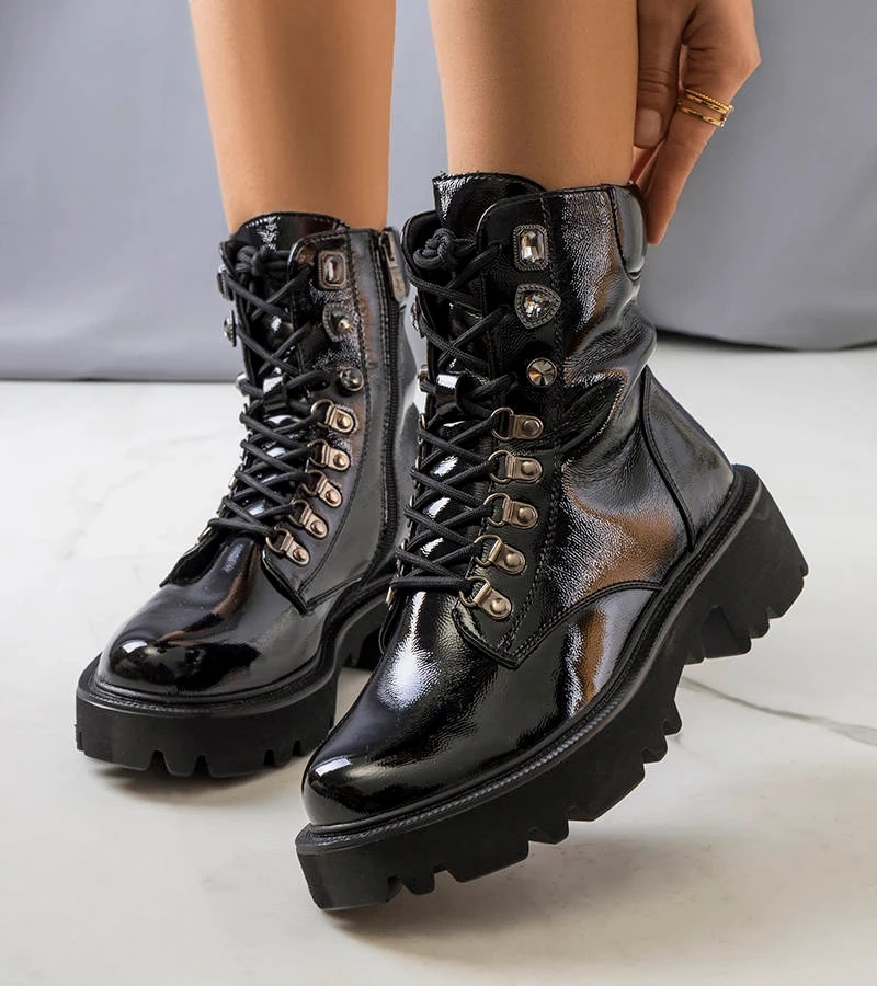 Cizme de trapper lăcuite negre de la Edaline