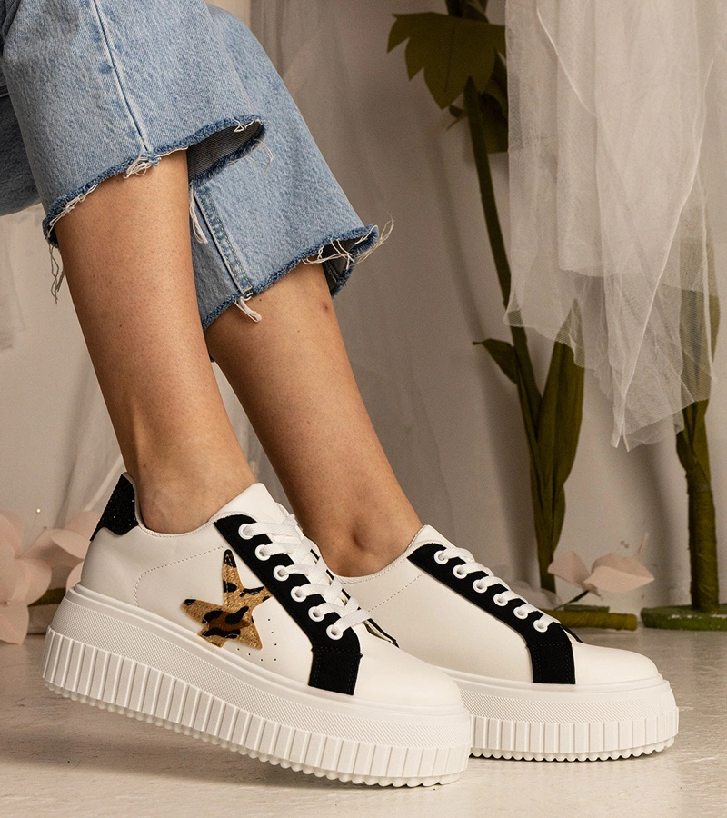 Adidași pentru femei alb-negru cu talpă înaltă Selina