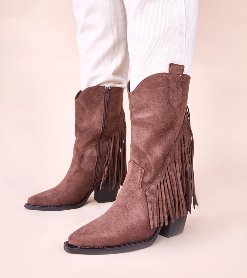 Cizme cowboy maro cu franjuri Elama