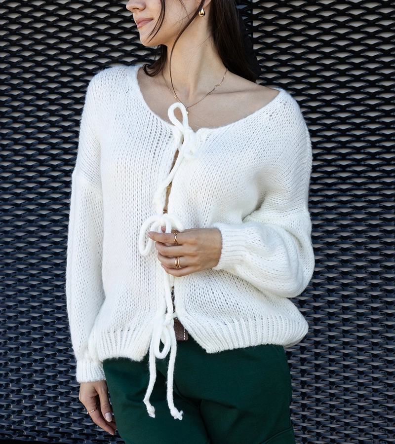 Szary wiązany sweterek Sumaia w języku rumuńskim to: **Pulover gri legat Sumaia**.