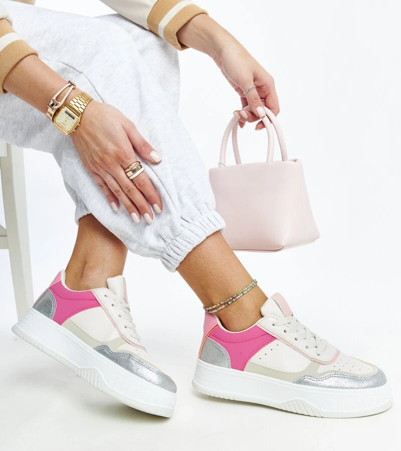 Teniși albi-argintii cu talpă groasă Finestra