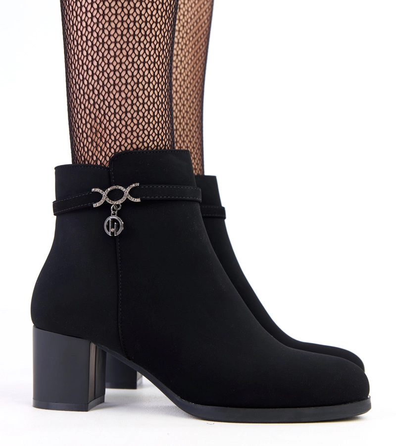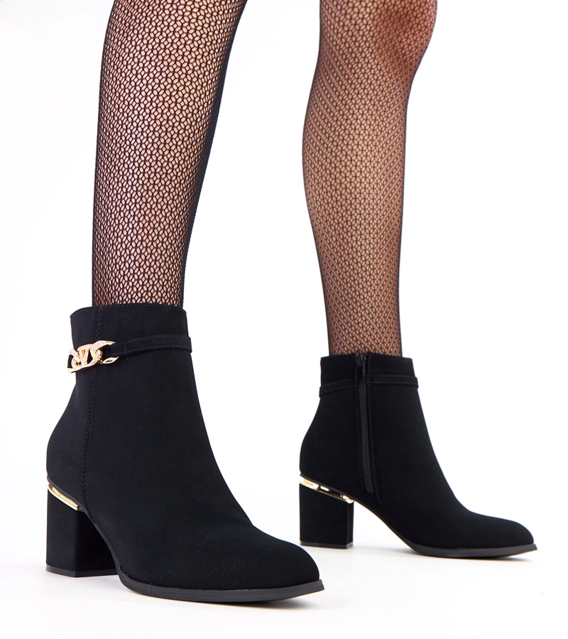 Botine negre cu ornament delicat din piele ecologică mată Angelo