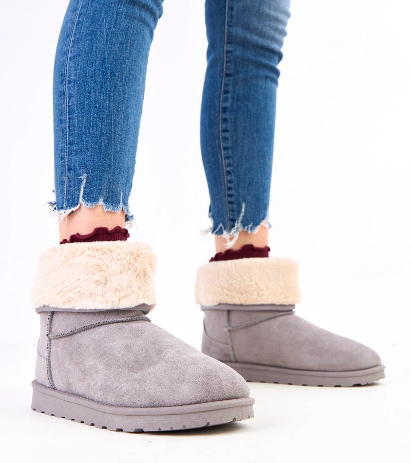 Cizme de zăpadă gri cu blană pe platformă Meggi