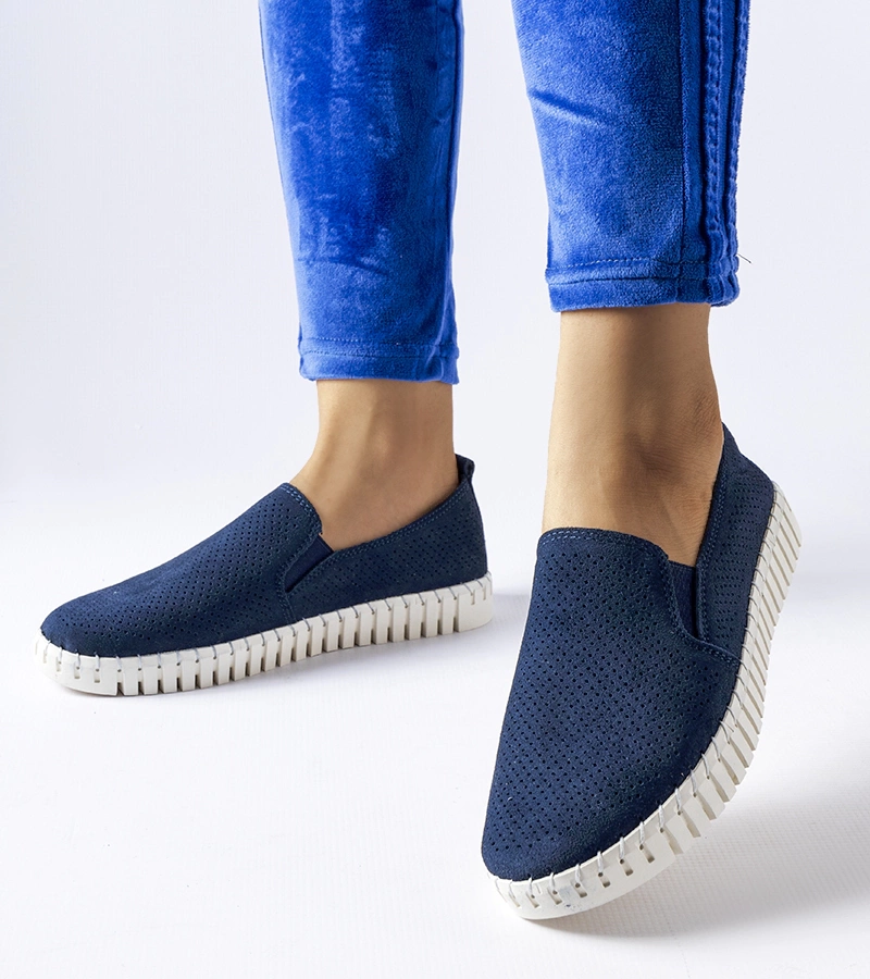 Mocasini Lerino albastru marin cu cataramă pe toc