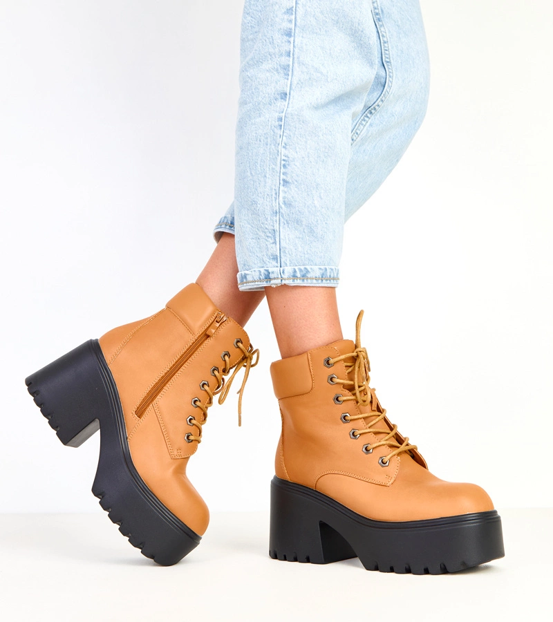 Cizme de zăpadă căptușite bej închis pe platformă Ribeiro