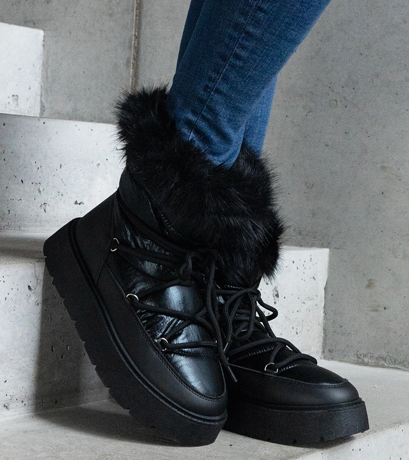 Cizme de zăpadă bej închis pe platformă, căptușite cu blană Sapphi