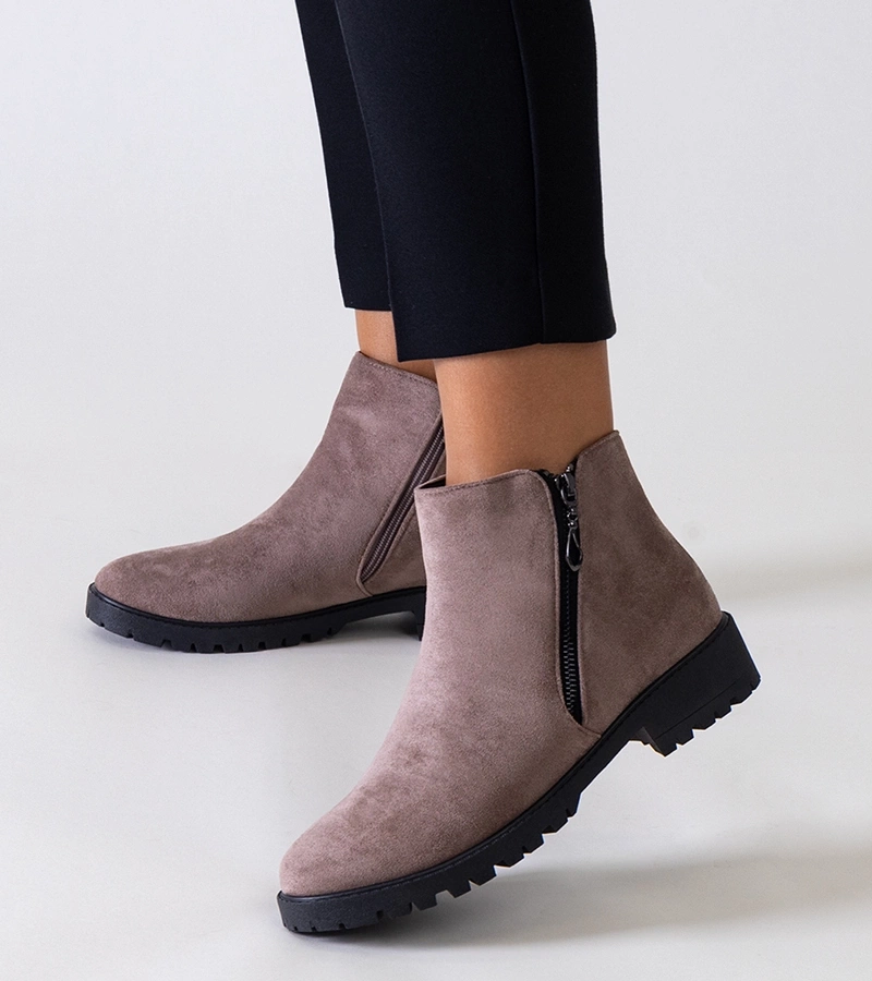 Botinele maro cu inserții metalice din eko-velur Branda.