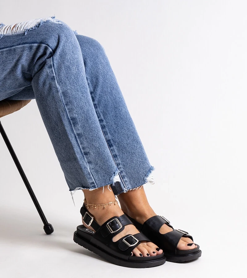 Sandale negre cu toc descoperit din piele ecologică Anatolia
