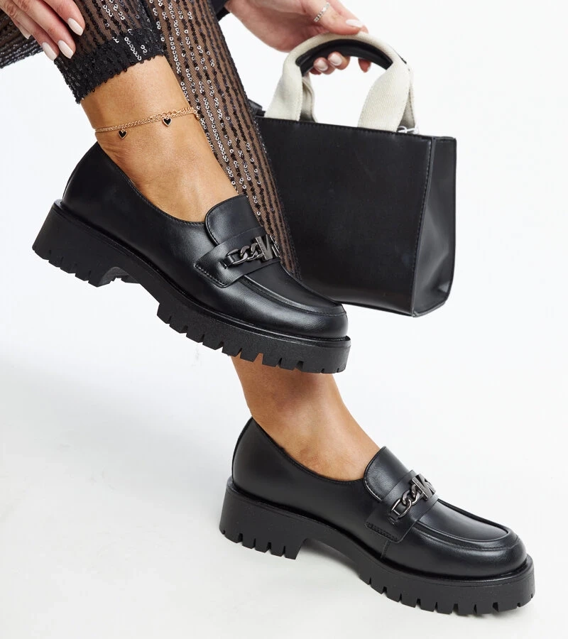 Pantofi negri de tip derby cu inserție de piele Vinceza