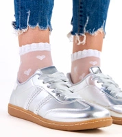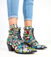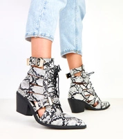 Botine alb-negru cu toc gros, cu șireturi și decupaje Verica