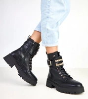 Cizme negre din piele ecologică cu ornament auriu Meliros