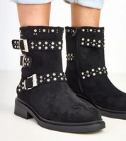 Botine negre cu decorațiune delicată din piele ecologică Angelo