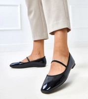 Pantofi cu toc înalt lăcuiți negri decorați cu zirconii Almana