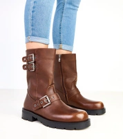 Cizme negre cu curea decorativă din piele ecologică mată Vernon