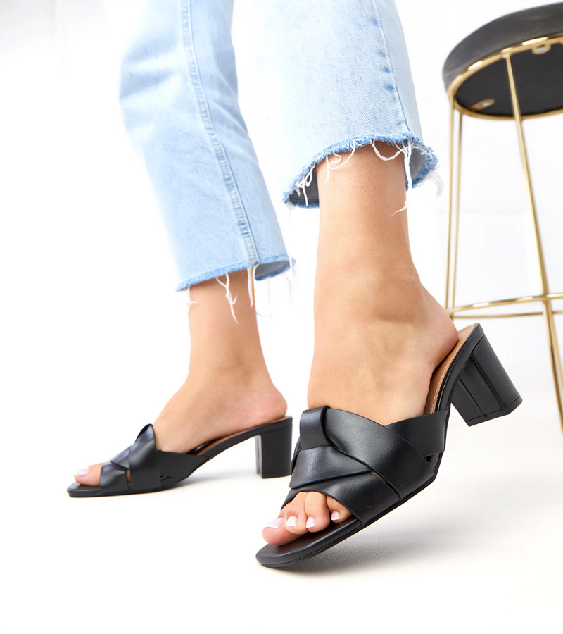 Czarnie clasice papuci cu toc din piele ecologică Risana