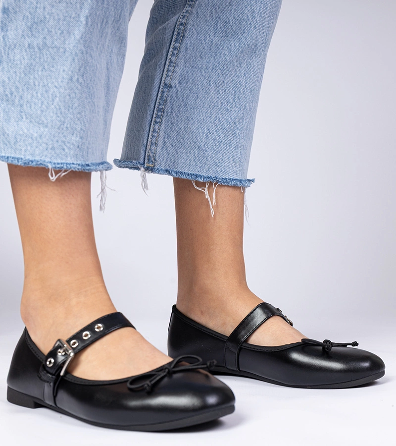 Balerini clasici negri cu fundiță Merasol