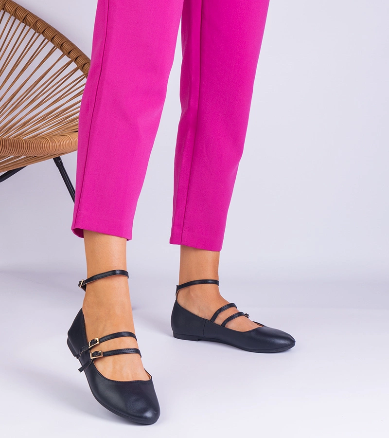 Balerini negri din piele ecologică cu catarame Vitoldora