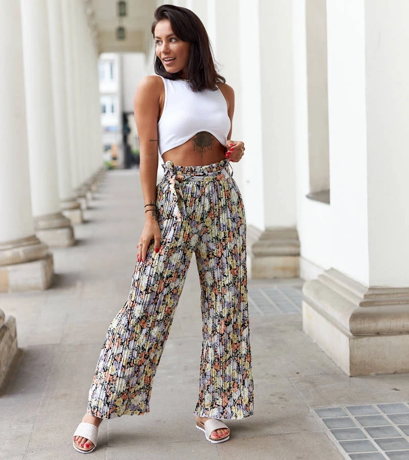 Pantaloni Aberdeen cu pliuri largi, de culoare albă