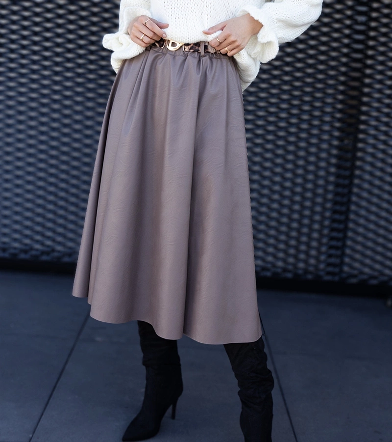 Fustă lungă bej închis, decorată cu o curea cu motiv animalier Hanie.
