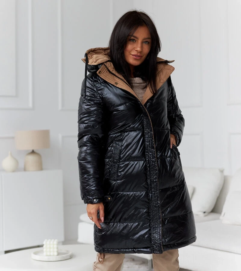 Jacheta călduroasă neagră-maronie cu două fețe Scalette