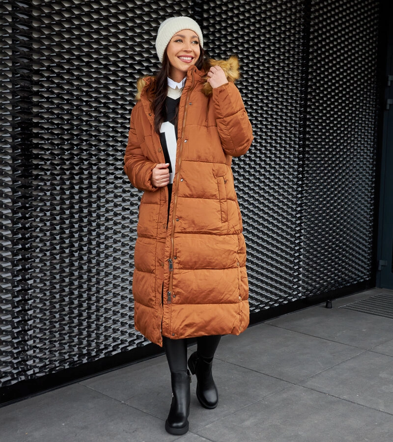 Jachetă lungă roșie cu glugă detașabilă Fela