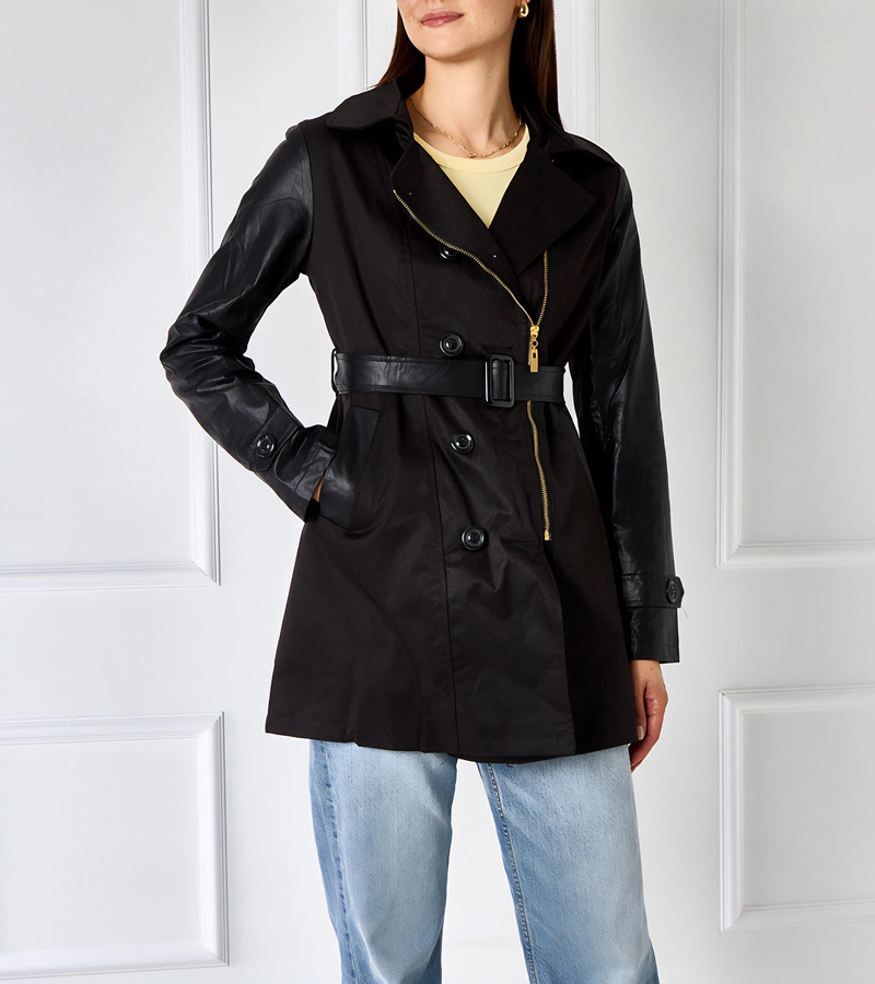 Pardesi elegant negru, oversized, cu legare Bahera.