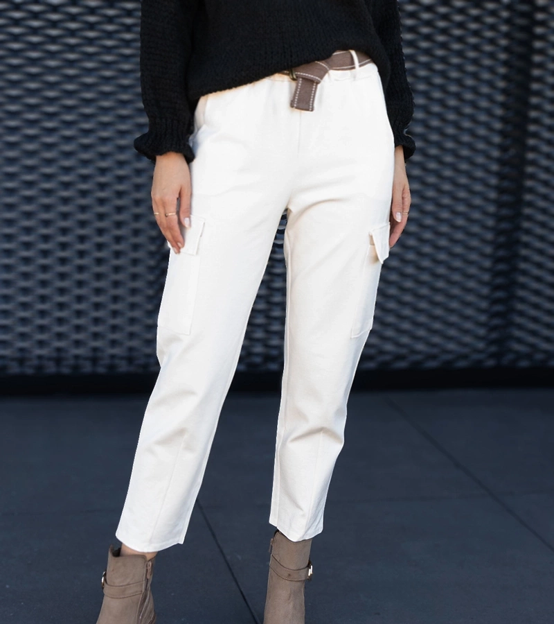 Pantaloni albi tip cargo cu buzunare aplicate Nuala.