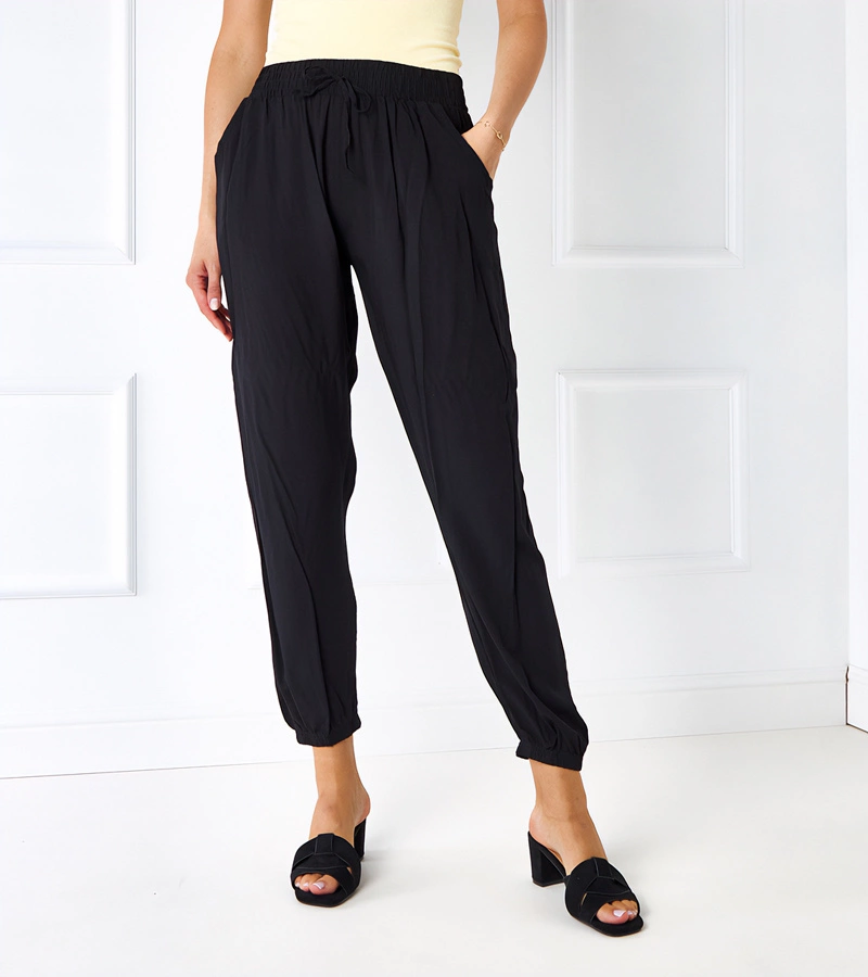Pantaloni Sammira cu pliuri largi pentru femei, de culoare neagră