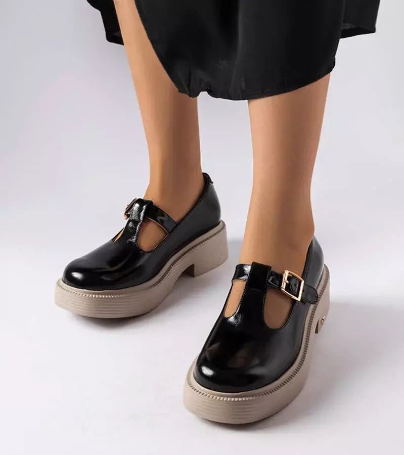 Pantofi de jumătate lăcuiți negru și galben de l'Amandier