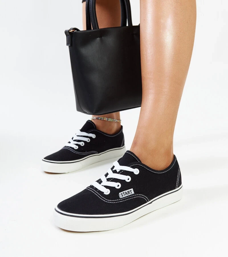 Sneakers negri pe platformă, decorati cu zirconii Maras