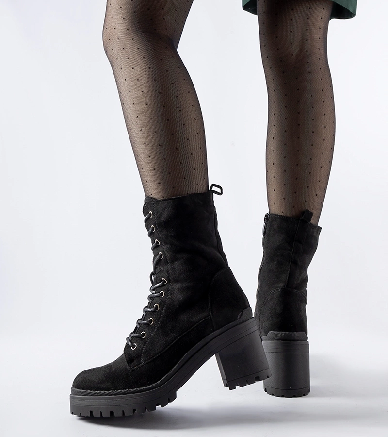 Botine negre mate căptușite cu căptușeală Piedalue