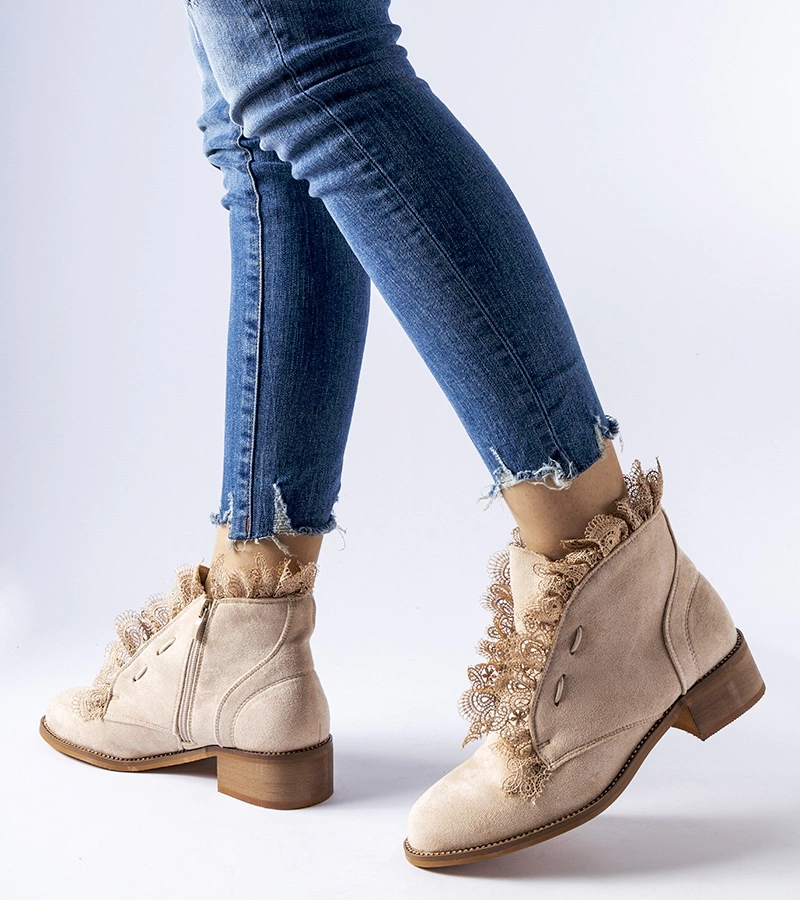 Botine bej cu zirconii și dantelă Belviglieri