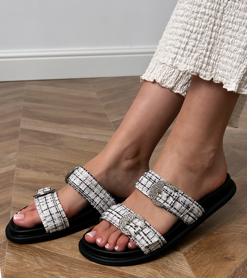 Sarini saboți bej cu talpă plată și textură