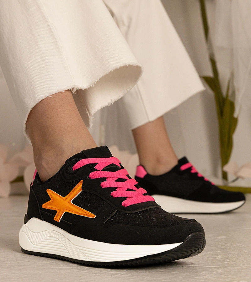Adidași sport negri pentru femei cu sclipici Kaletti