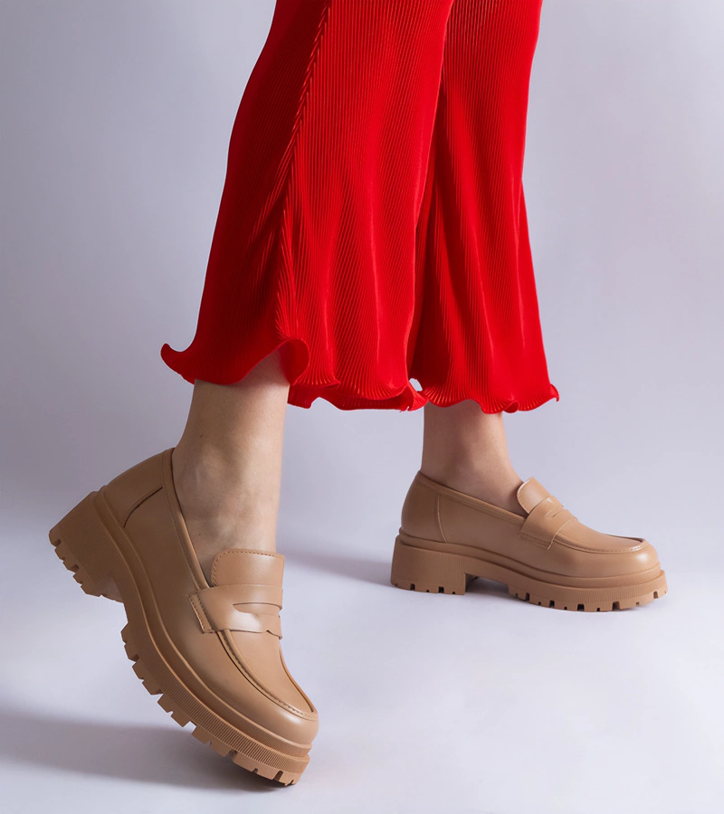 Mocasini bej închis pentru femei din piele ecologică Violanda