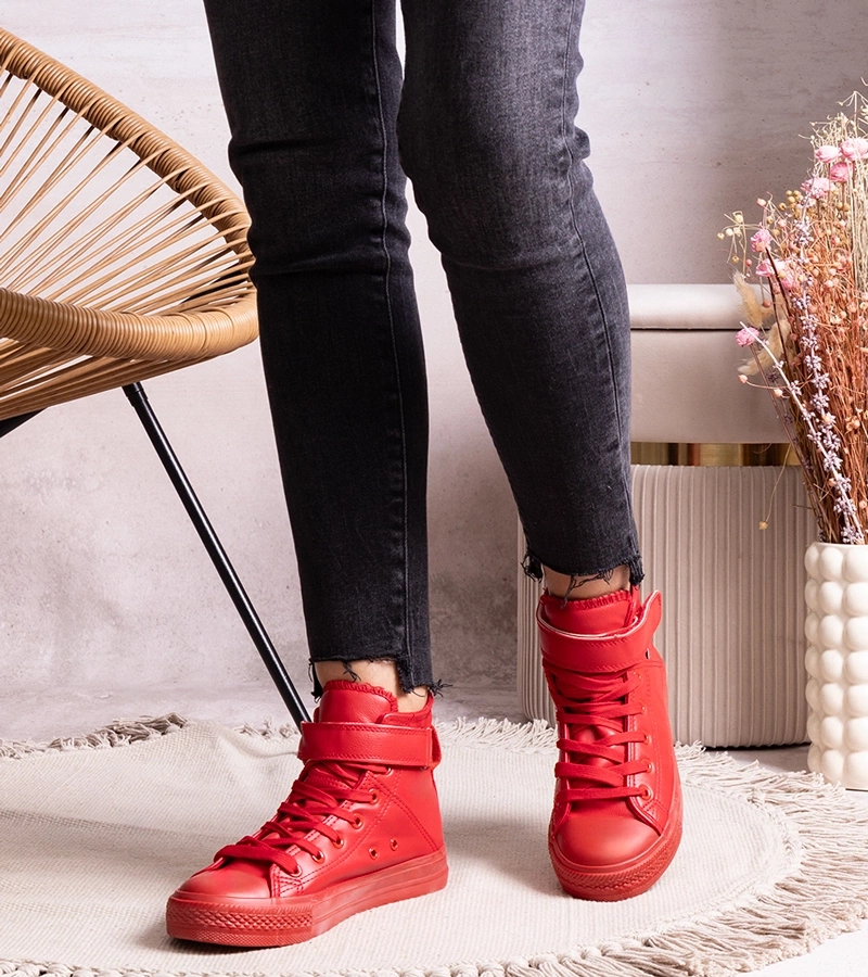 Adidași roșii înalți din piele ecologică Bonbonita.
