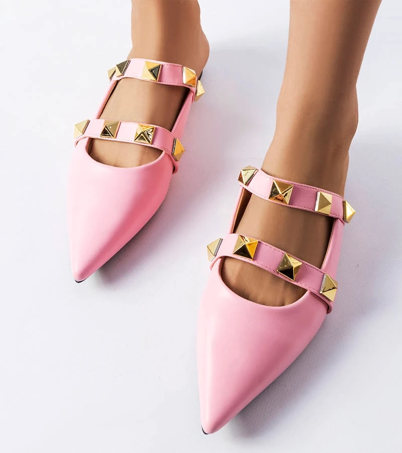 Flip-flops Launay roz cu tocuri joase