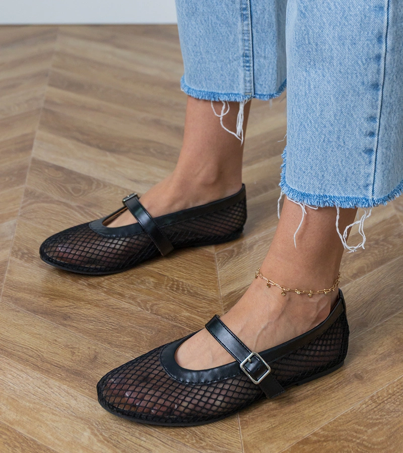 Balerini negri din plasă cu cataramă decorativă Zerid