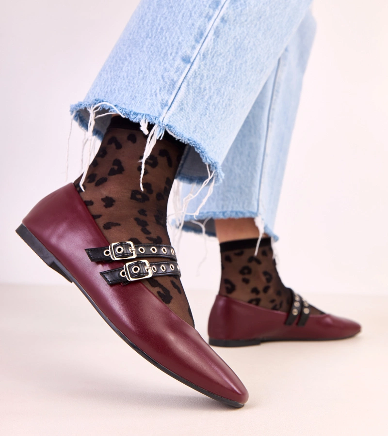 Balerini bordo cu cataramă decorată Faira