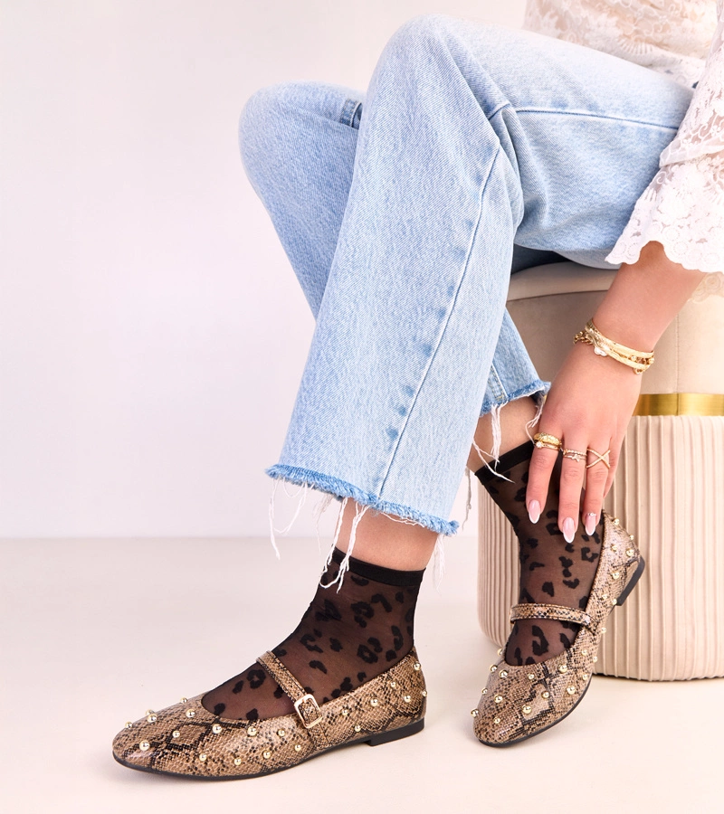 Balerini maro cu model de piele de șarpe decorați cu perle Selena