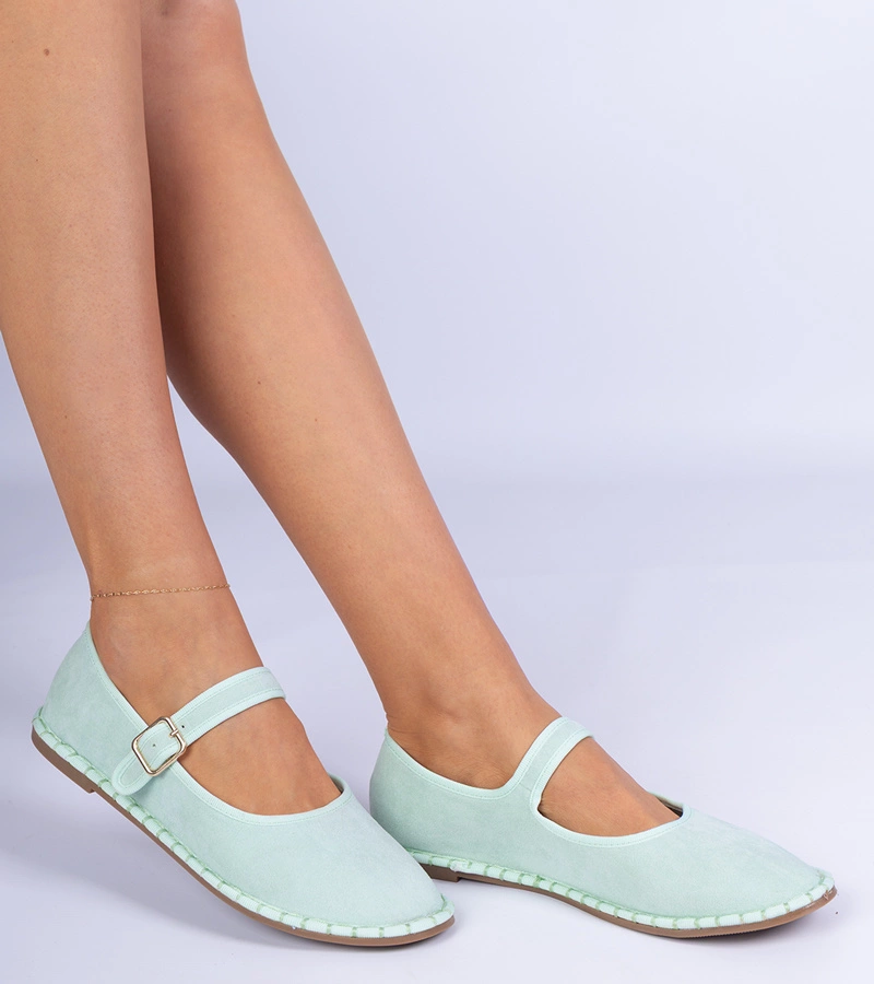 Balerini clasici verzi din piele ecologică întoarsă Valensia