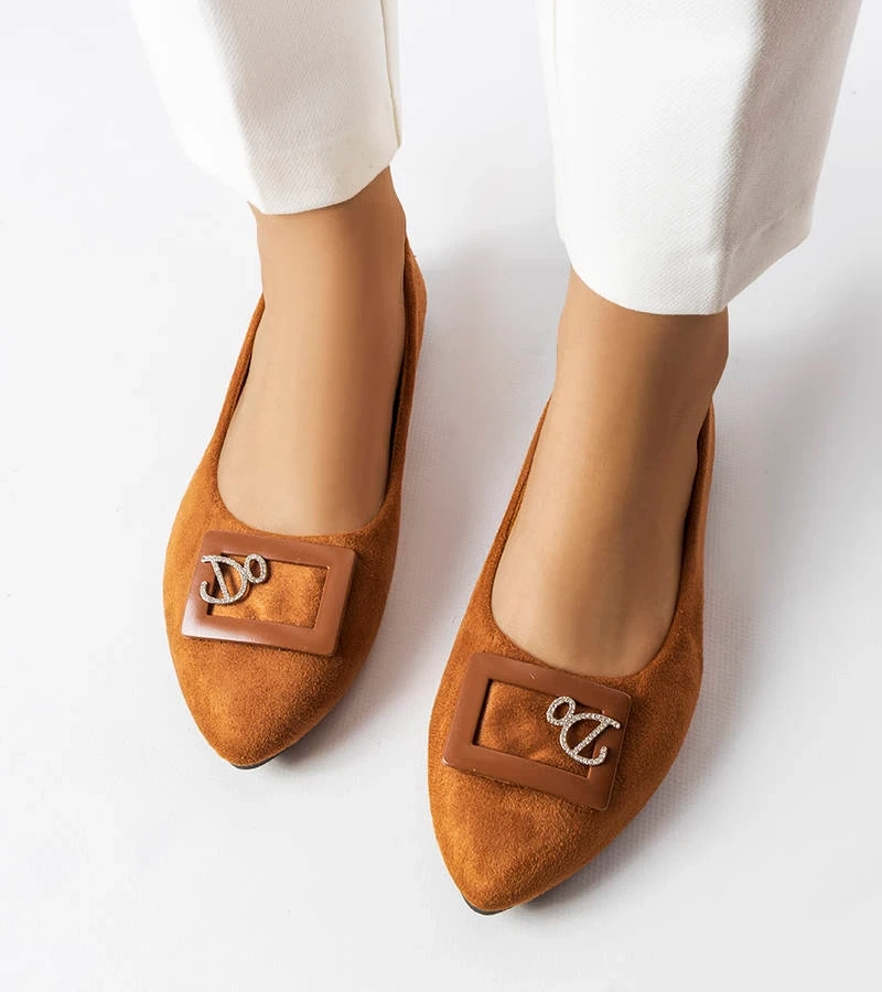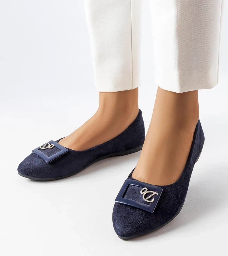 Balerini de culoare albastru marin, înfrumusețați cu o fundă Jetté