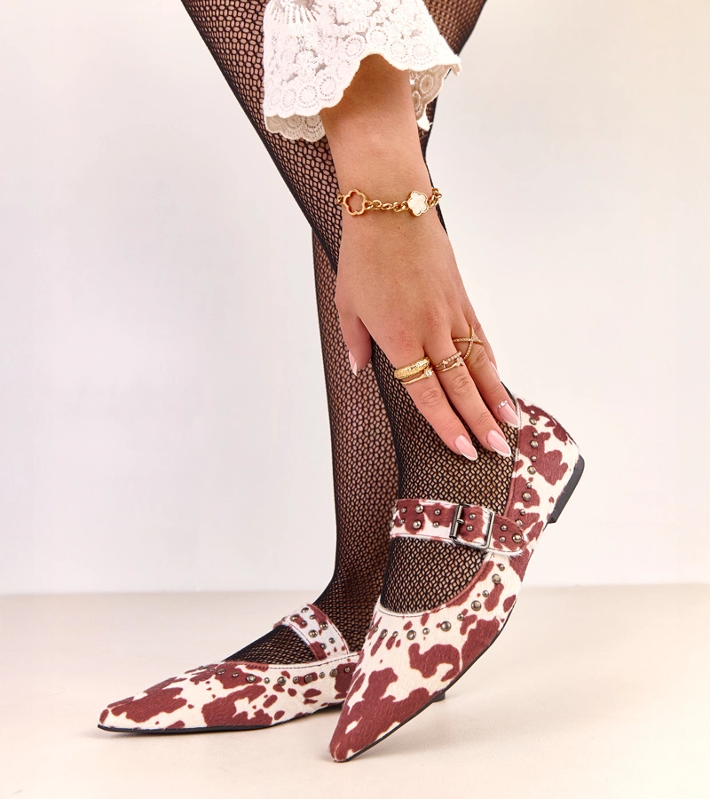 Balerini maro cu imprimeu de vacă cu cataramă Lena