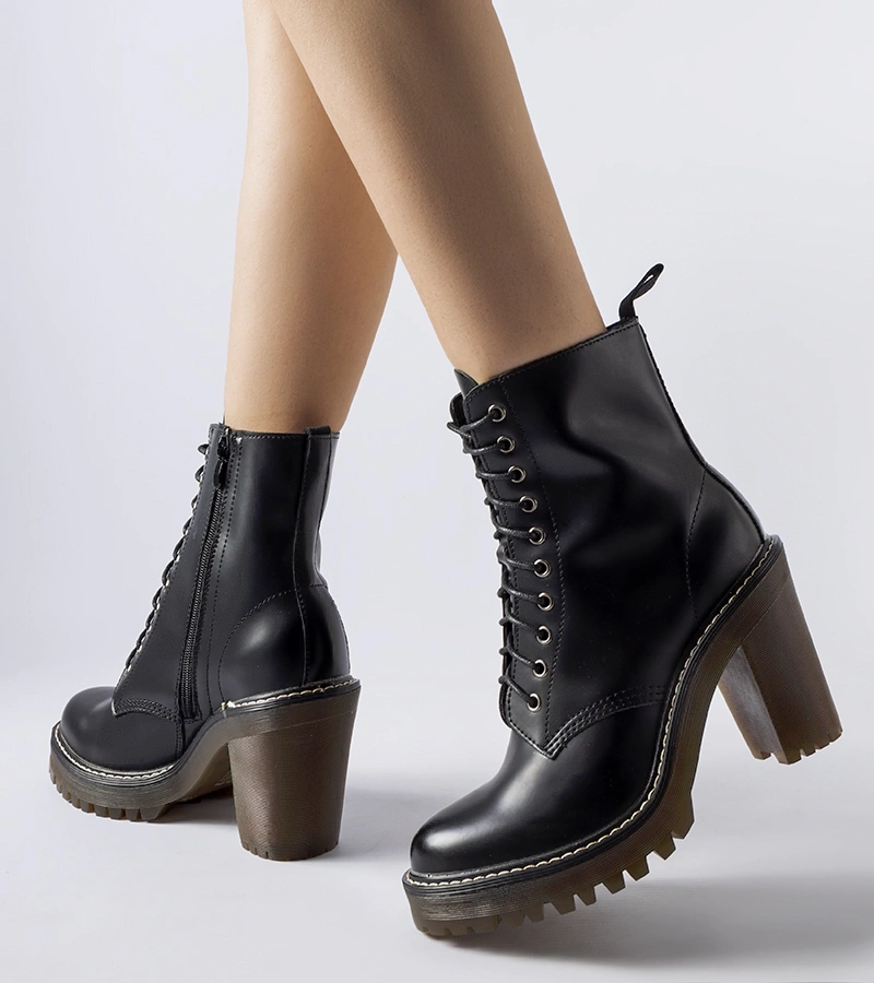 Bocanci negri căptușiți, ornamentați cu șireturi Amla