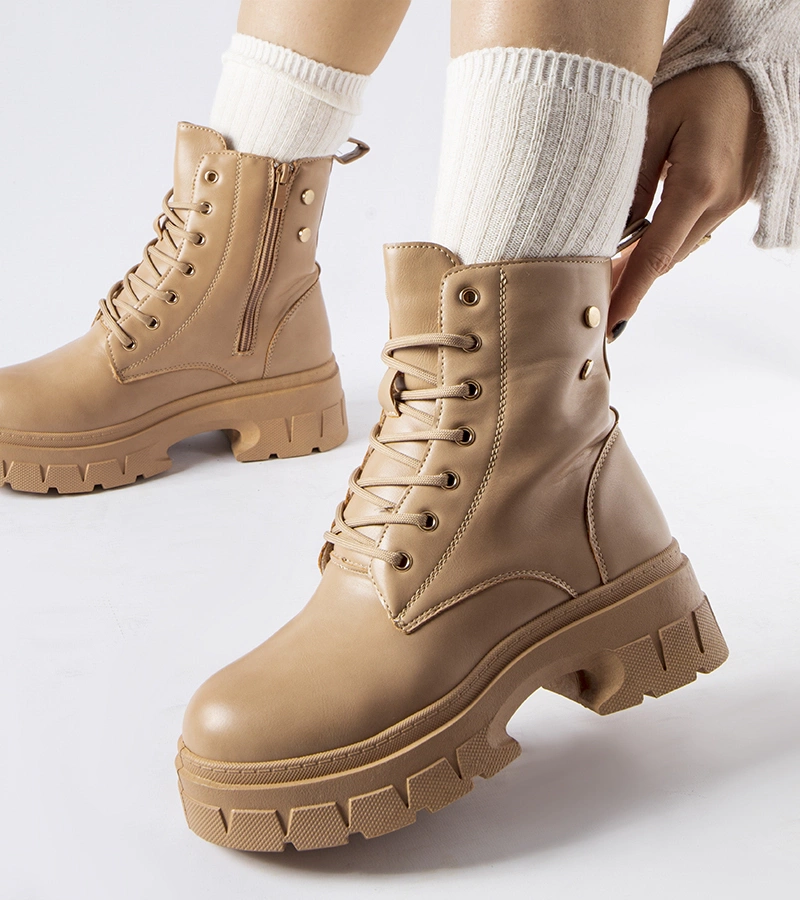 Cizme bej deschis cu talpă mai groasă de la Manara
