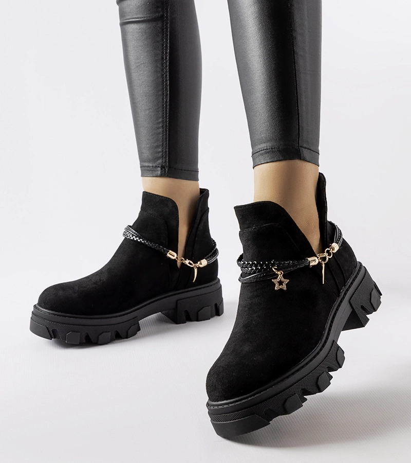 Botine negre și bej din imitație de catifea Big Star MM274322
