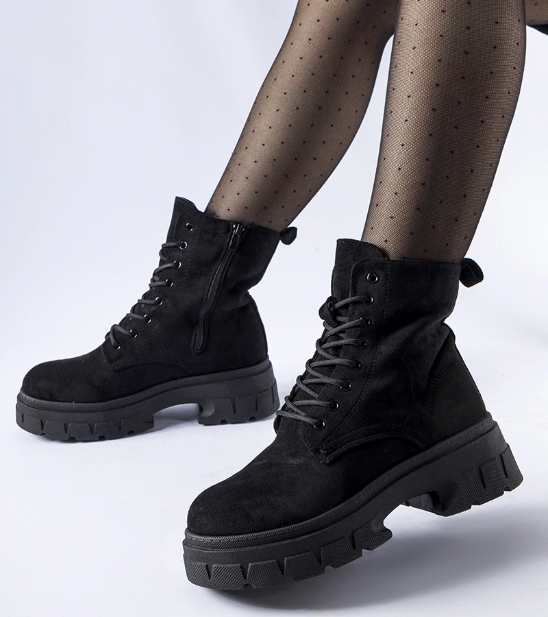 Bocanci negri căptușiți, ornamentați cu șireturi Amla