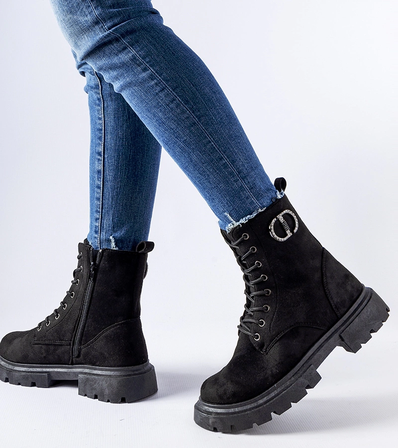 Cizme negre cu zirconiu eco-suede Sfaranda