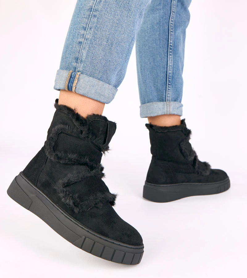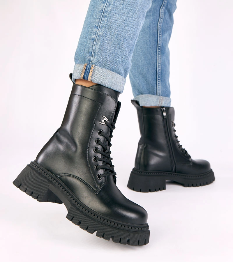 Botine negre din piele ecologică întoarsă cu talpă masivă Alana